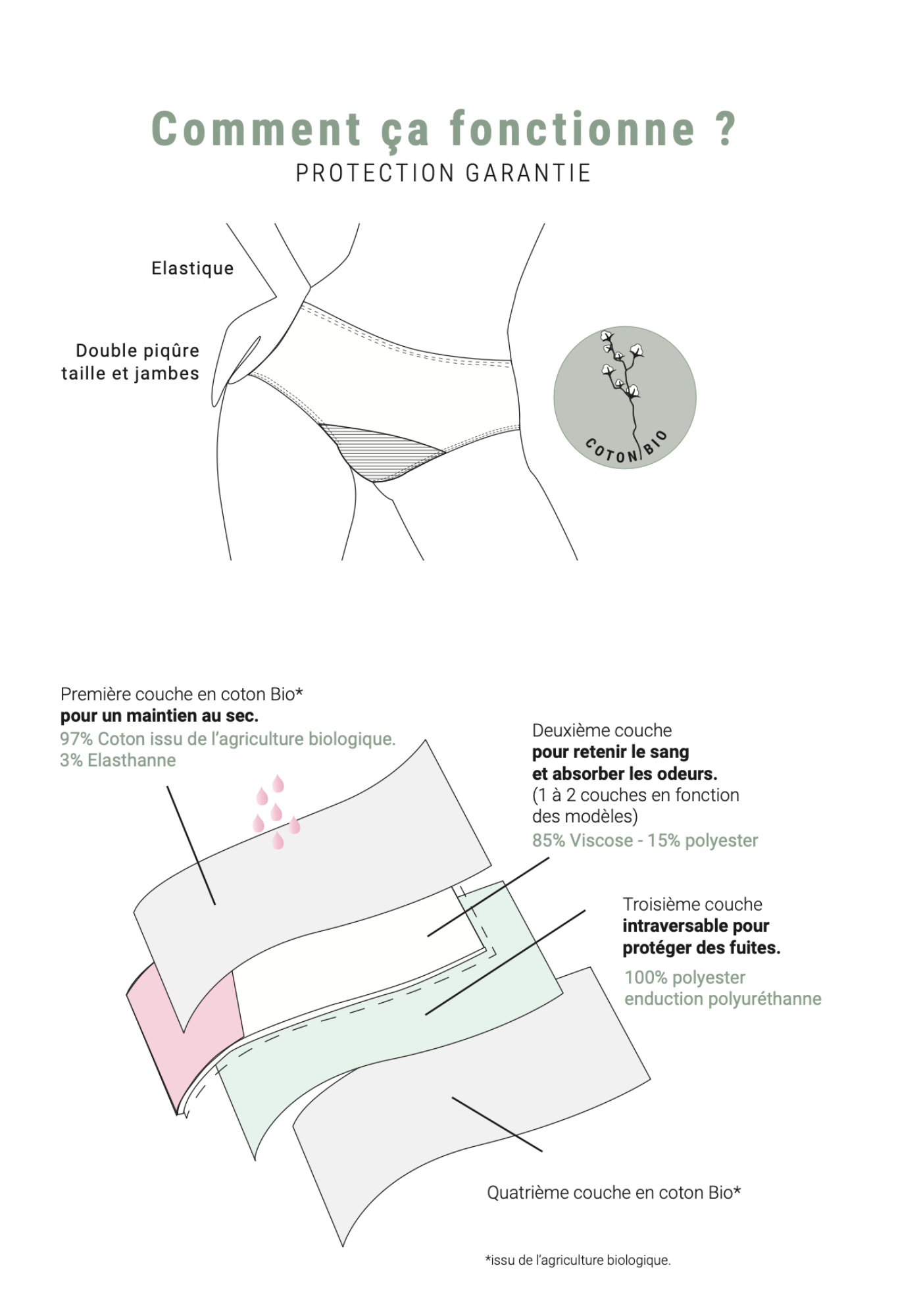 - Grâce au savoir-faire, à la qualité et à la durabilité de nos culottes menstruelles, elles vous accompagneront pendant au moins 7 ans si vous y prenez bien soin.